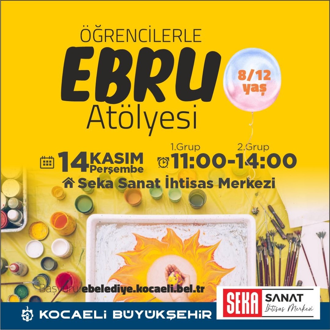 İzmit’teki etkinliklerin gerçekleştirileceği Seka Sanat İhtisas Merkezi’nde; resim, seramik, ebru, tezhip, hat ve kat-ı atölyeleri oluşturulacak. Resim 12 Kasım Salı, seramik 13 Kasım Çarşamba, ebru ve tezhip 14 Kasım Perşembe, hat ve kat-ı atölyeleri ise 15 Kasım Cuma düzenlenecek. Atölyelerdeki eğitimler, Büyükşehir Belediye Konservatuvarı Güzel ve Geleneksel Sanatlar eğitmenleri tarafından verilecek ve 11.00-12.00 ile 14.00-15.00 arasında iki seans halinde gerçekleştirilecek.