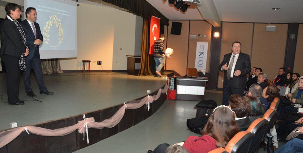 “Başkent Antik İzmit’te Gebze bölgesinde 450 bin yıllık bir orak bulunmuştur. Neolitik Tunç dönemine ait olduğu tespit edilmiştir. Adatepe’de hiç bilinmeyin bir dönem bulundu. İnanın bu coğrafya çok şöyle saklıyor. Yine yapılan kazılarda ele geçen heykeller bölgede heykeltıraşlık atölyelerinin de merkezi olduğu yönündedir. Ayrıca Helenistik ve Roma dönemine ait 7 yerde kil yatakları bulundu. Bu seramik atölyelerinin burada olduğunu işaret ediyor. Yani dünyaya kap kaçak buradan gidiyordu. Nikomedia kentinin Bizans Dönemi’ne ilişkin olarak elde edilen kalıntılar büyük oranda, Eskiçağ ve Ortaçağ boyunca depremlerle sarsılan bugünkü İzmit kent merkezinin altındadır. Örneğin kentin Roma Döneminin en büyük antik tiyatrosu Bağçeşme Mevkii’nde bulunmaktadır. Türkiye’deki 412 tiyatrodan bir tanesidir. 164 metre çapında 30 bin kişi kapasiteli olduğu düşünmektedir. Bugün İzmir Efes tiyatrosu 25 bin kişi kapasitelidir. Burası ondanda büyük olup dünyanın en büyük antik tiyatrosudur. Detaylı çalışma yapmak lazım. Dünyanın tek örneği olan bu tiyatro gizemini hala korumaktadır. Bölgemizde 39 Roma köprüsü ve 16 su kemeri de bulunmaktadır” Sunumun ardından Müze Müdürü Gedük, Konuşmacı Ross’a teşekkür ederek çiçek takdim etti. Tahribat konusunda halkı bilgilendirme için bir çalışma yapacaklarını duyurdu.