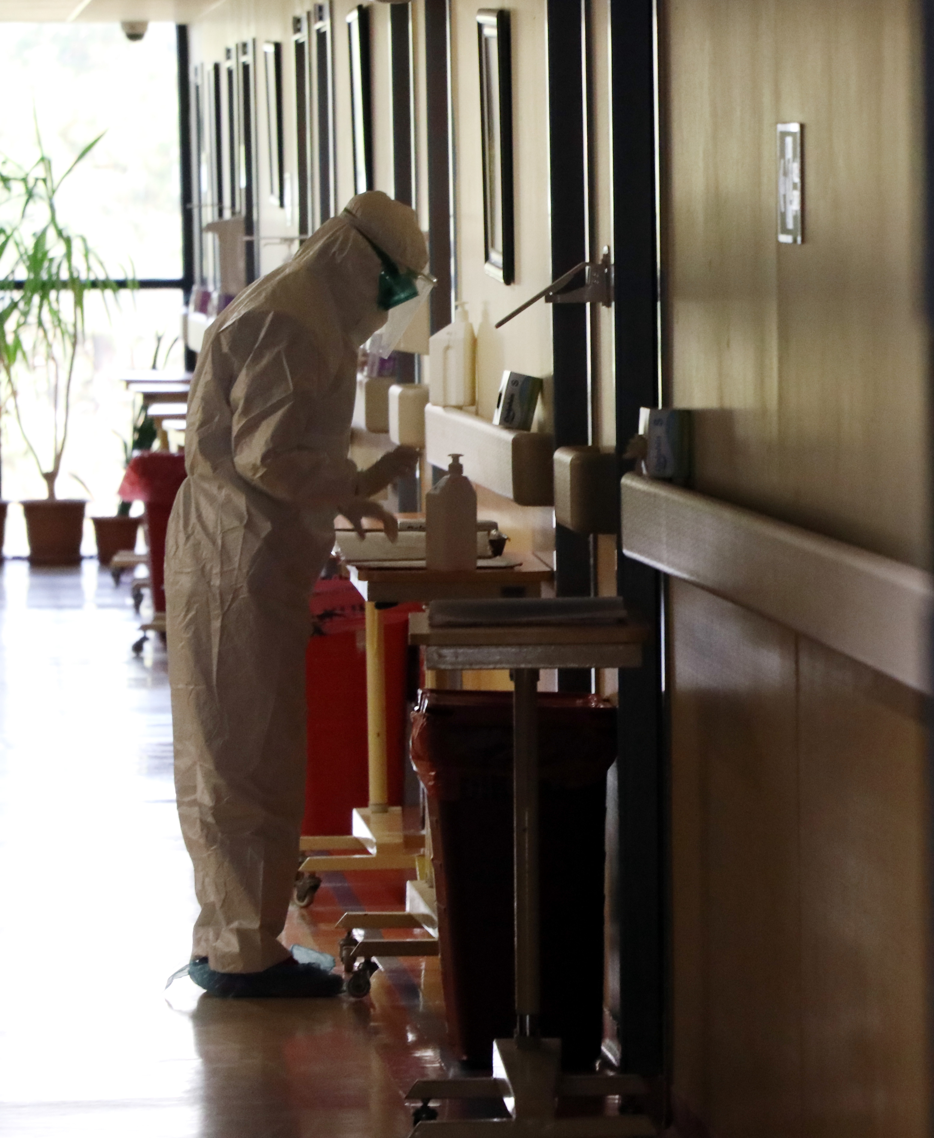 Her hastayla özenle ilgilenen personel, insanlara koronavirüs tedbirlerine uymaları konusunda çağrıda bulunuyor.