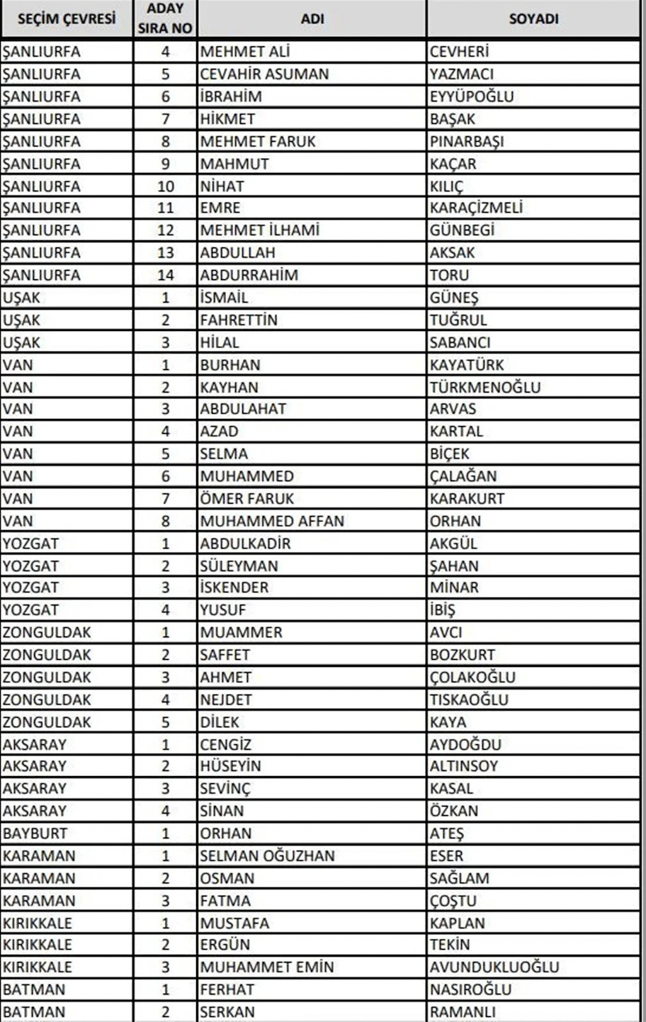 Adalet ve Kalkınma Partisi (AK Parti) 14 Mayıs'ta yapılacak olan 28. Dönem Milletvekili Genel Seçimi'ne katılacak milletvekili adaylarının listesini Yüksek Seçim Kurulu'na (YSK) teslim etti. 27. Dönem'de görev alan milletvekillerinin yüzde 70'i değişti. En genç milletvekili adayı ise 19 yaşında bir üniversite öğrencisi oldu. Cumhurbaşkanı Yardımcısı Fuat Oktay ve kabinedeki bakanlar listede üst sıralarda yer aldı. Kültür ve Turizm Bakanı Mehmet Nuri Ersoy ile Sağlık Bakanı Fahrettin Koca ise listede yok.