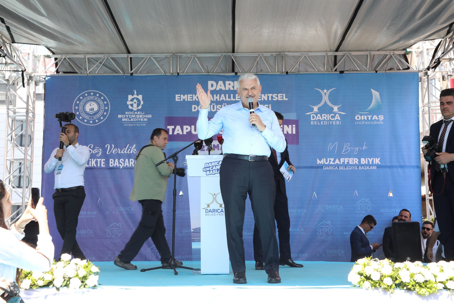 AK Parti Genel Başkanvekili Binali Yıldırım, Kocaeli’nin Darıca ilçesinde düzenlenen Emek Mahallesi Kentsel Dönüşüm Projesi çerçevesinde tapu teslim törenine katıldı. Programda konuşan ve 27 Mayıs tarihinin önemine değinen AK Parti Genel Başkanvekili Binali Yıldırım, “27 Mayıs’ın ne demek olduğunu bilmeyeniniz yok. 27 Mayıs millet iradesine, Türkiye demokrasisine karşı yapılan ilk darbedir. Aradan yıllar geçmesine rağmen maalesef darbenin hasarları, darbenin verdiği zararlar hala konuşuluyor. 27 Mayıs bu ülkenin seçilmiş başbakanı, 2 tane bakanının darbeyle indirildiği ve idam edildiği yüz karası bir olaydır. Bugün Adnan Menderes, Fatin Rüştü Zorlu ve Hasan Polatkan birer demokrasi şehidi olarak milletimizin gönlünde yerini yapmıştır. Ancak o darbeyi yapanları bugün hiç kimse hatırlamamaktadır. Bu neyi gösteriyor? Bu da bizim milletimizin halk iradesine olan desteğini ve sahip çıkmasını gösteriyor. 27 Mayıs ile kalmadı Türkiye’de mili iradeye, demokrasiye müdahaleler. 12 Mart, 12 Eylül, 28 Şubat, 27 Nisan Elektronik Muhtırası ve daha sonra biliyorsunuz en son olarak 2016 yılı 15 Temmuz hain FETÖ darbe girişimi bunları takip etti. Milletten yetki almayan, milletin desteğine sahip olmayanların millet iradesine karşı giriştiği her darbe maalesef darbeciler adına başarıyla sonuçlandı. Bunun bir istisnası var; 27 Nisan elektronik darbe girişimi, muhtıra ve 15 Temmuz alçak FETÖ’culara karşı milletin verdiği o şanlı direniştir. O gece her biriniz bayraklarınızla 7’den 70’e liderimizin çağrısıyla meydanlara indiniz, alçaklara hak ettikleri dersi verdiniz. Ezanımız dinmedi, ay yıldızlı bayrağımız inmedi ve bütün teröristler hak ettikleri cezayı aldı. Rabbim bir daha bu günleri yaşatmasın” dedi.