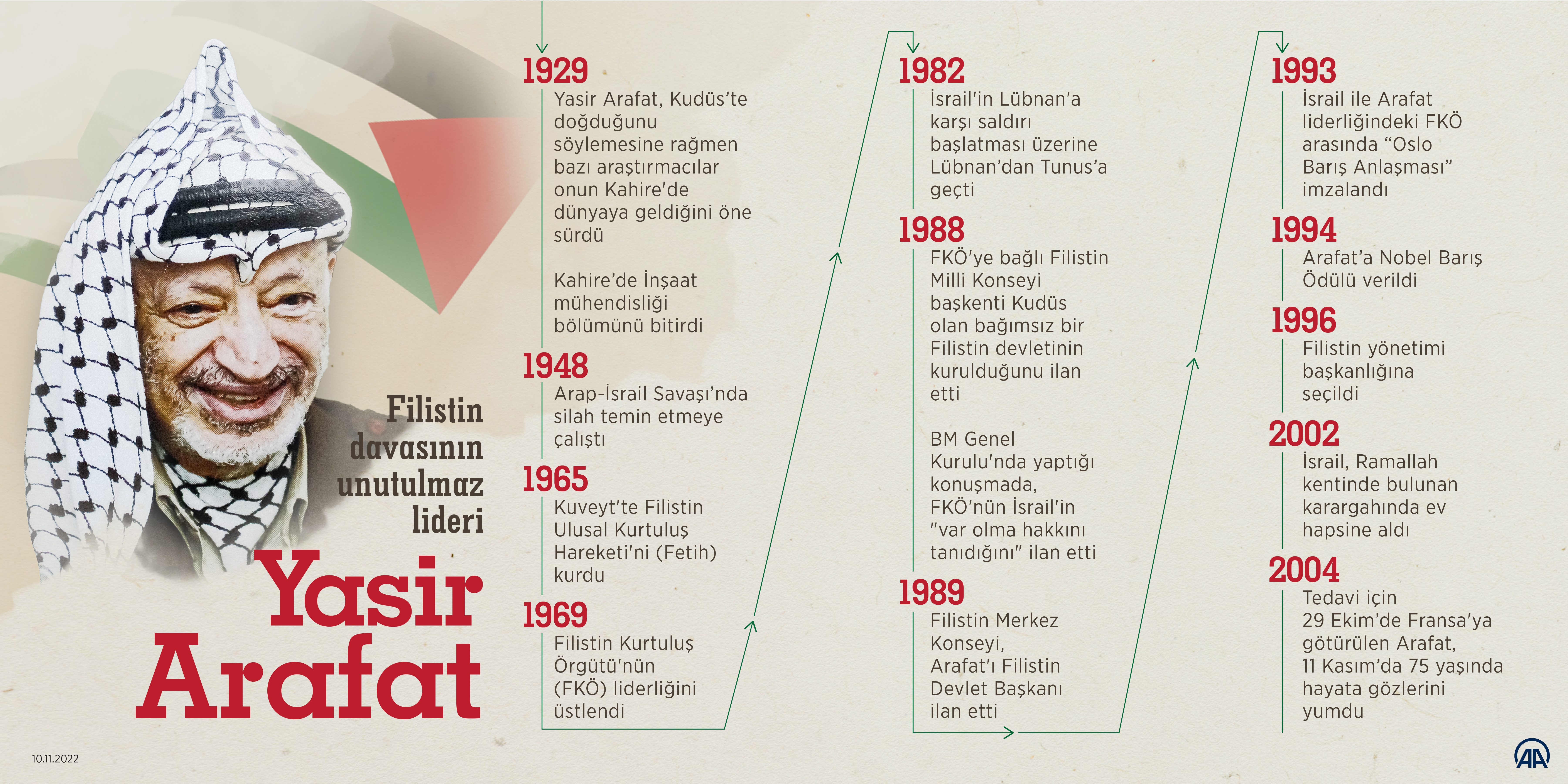 Hayatı boyunca Filistin'in özgürlüğü için mücadele eden Yasir Arafat, vefatının üzerinden 18 yıl geçse de Filistin davasının en önemli simgesi olmaya devam ediyor.
