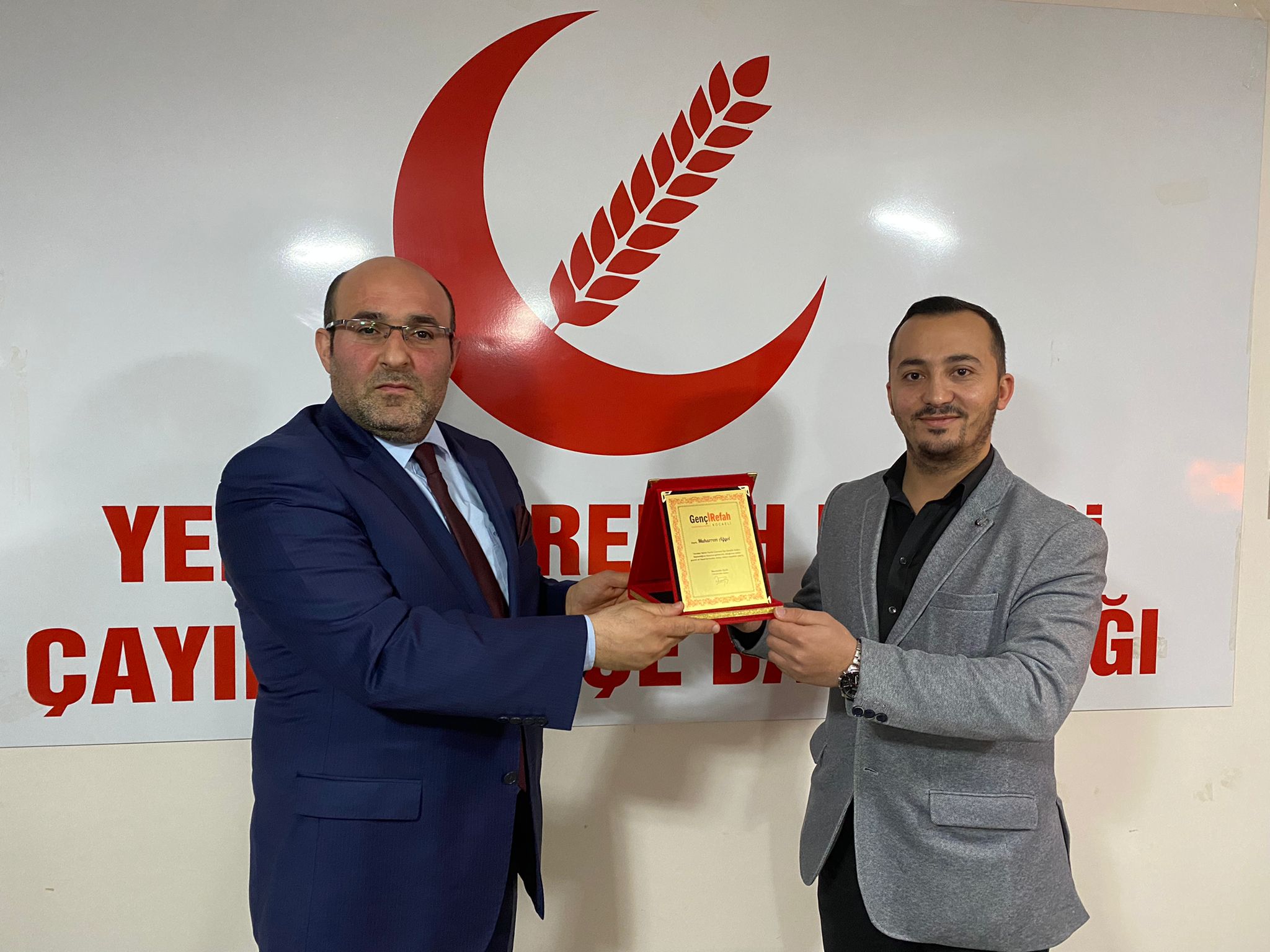 Yeniden Refah Partisi Kocaeli İl Gençlik Kolları başkanı Necmettin İşlek, görevlendirme yazısını Murat Aydın’a teslim ederek yeni görevinde başarılar dilerken, Muharrem Ağyol’a bugüne kadar sürdürdüğü görevi için teşekkür plaketi takdim etti.