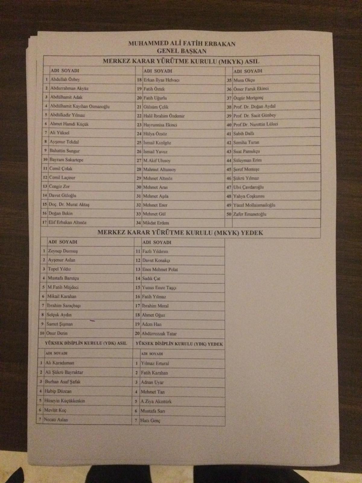 Fatih Erbakan, kurucusu olduğu Yeniden Refah Partisinin 1. Olağan Büyük Kongresi'nde delegelerin 971'inin oyunu alarak genel başkan seçildi.