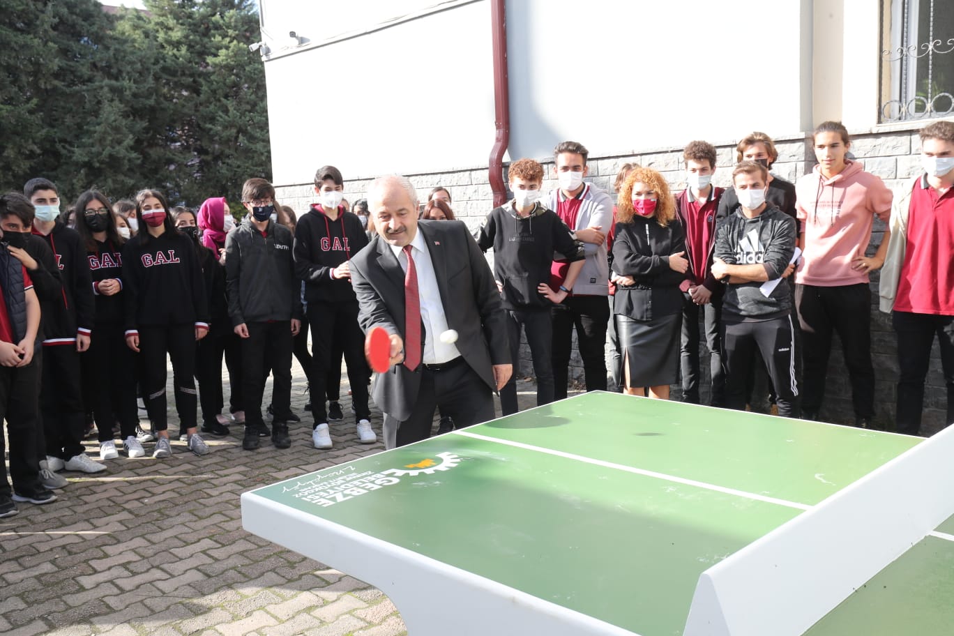 “Okula gelirken raketini al da gel” diyerek startını verdiği uygulama kapsamında masa tenisi ve ayak tenisi ekipmanları kazandırılan Yunus Emre Ortaokulu ve Gebze Anadolu Lisesi öğrencileriyle bir araya gelen Gebze Belediye Başkanı Zinnur Büyükgöz gençlerle masa tenisi oynadı