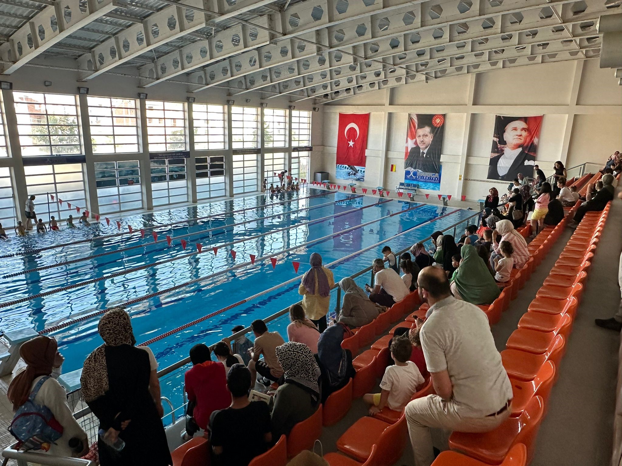 Darıca Belediyesi, herkesin spor branşıyla ilgilenmesi amacıyla 7’den 70’e toplumun her kesimine yönelik projeler geliştiriyor. 13 farklı branşta yaklaşık 4 bin lisanslı sporcu yetiştiren Darıca Belediyesi, okulların kapanması ve yaz tatilinin gelmesiyle birlikte "Yüzme bilmeyen kalmasın" projesini başlattı. Kadınlar ve erkekler havuzu olmak başlatılan kurslar ile bir ayda yaklaşık 3 bin 500 genç, yüzme sporu ile tanıştı. Uzman eğitmenler eşliğinde yüzme öğrenen gençler, hem yaz tatilini eğlenerek geçiriyor hem de yüzme öğreniyor. Çocuklara yüzmeyi sevdirmek için başlatılan projeye ilgi oldukça yoğun olurken yaz boyunca kursların devam edeceği belirtildi. Darıca Belediye Başkanı Muzaffer Bıyık da herkesi spor yapmaya devam ederek “Darıca Belediyesi Eğitim ve Spor Kulübümüzün bünyesinde herkese hitap edecek branşlarda eğitimler veriyoruz. Spor yapmak isteyen herkesi bekliyoruz. Yüzme bilmeyen kalmasın projemizle çocuklarımıza hem yüzme sporunu öğretiyoruz hem de onlara bu sporu sevdiriyoruz. Darıca’nın sporcu çocuklarını geleceğe güvenle hazırlamak istiyoruz" dedi.