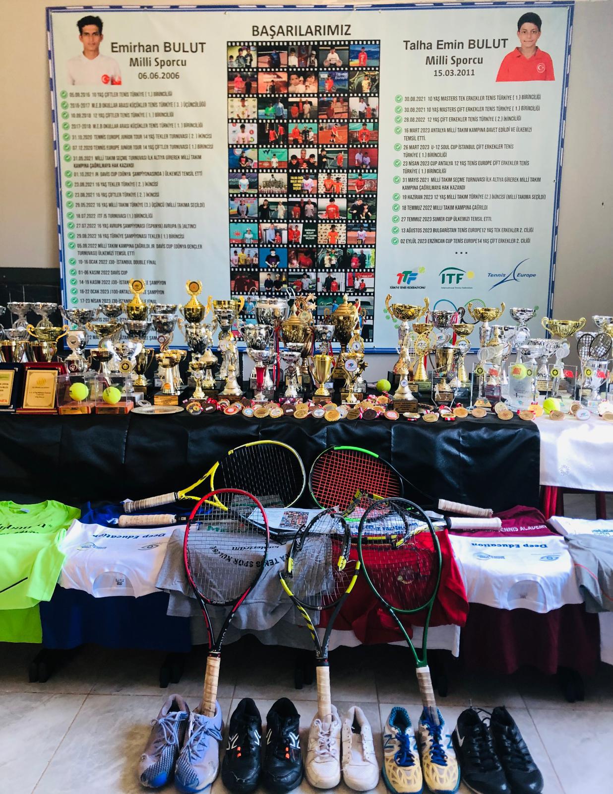 Merhabalar benim adım Talha Emin Bulut,15.03.2011 doğumluyum.14 yaşındayım.4 yaşında tenis oynamaya başladım ve tenis oynamayı çok seviyorum.Tenisteki başarılarımın bazıları;10 yaşında tekler ve çiftler Türkiye Şampiyonu oldum,12 yaşında Milli takımda Finalist oldum ve Milli Takıma seçildim,12 yaşında ise Türkiye Şampiyonasında çiftlerde Finalist oldum,14 yaşında Milli Takıma girdim ve Ülkemi Temsil ettim ,Tennis Europe’da toplamda 11 tane kupam var. Teklerde 1 tane Şampiyonluk 2 tane Finalim var, Çiftlerde ise 6 Şampiyonluğum var 2 tanede Finalim var. 14 Yaş Tennis Avrupa Sıralamasında 21.sıradayım. Başarılarımın bir kısmı ve Birçok Kupa ve Madalyalarım daha var.Hedefim dünya şampiyonu olmak. Bu başarılarda emeği olan antrenörlerime ve aileme teşekkür ederim. 20 Ocak 2025 tarihinde Tarbes Fransa’da yapılacak olan Les Petits As tenis turnuvasına hazırlanıyorum dedi .