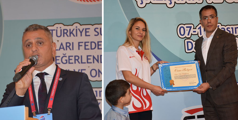 Özen, konuşmasının ardından uluslararası yarışmalarda dereceye giren sporcular ile antrenör ve kulüplere çeşitli ödüller verdi.