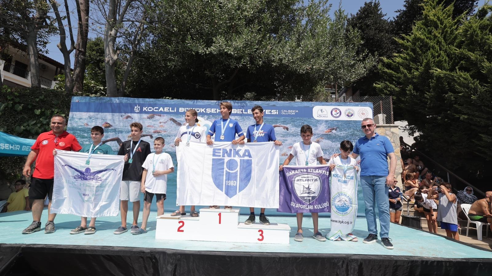 Yarışları izleyen ve sporculara başarı dileklerini ileten Kocaeli Büyükşehir Belediye Başkanı Tahir Büyükakın, dereceye giren yüzücülere ödüllerini takdim etti. Yarışları AK Parti Kocaeli Milletvekili Veysel Tipioğlu ve Cemil Yaman da izleyerek sporcuların heyecanına ortak oldu. Türkiye 11-12-13 Yaş Açık Su Yüzme Yaz Şampiyonası’nda her kategoride ilk 8'e giren kadın ve erkek sporculara madalya verildi. Ayrıca birinciye bin 500 TL, ikinciye bin TL, üçüncüye 750 TL, dördüncüye 600 TL, beşinciye 500 TL, altıncıya 400 TL, yedinciye 300 TL ve sekizinciye 200 TL nakdi ödül verildi.