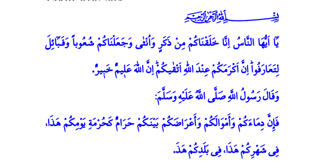 Muhterem Müslümanlar! Okuduğum ayet-i kerimede Yüce Rabbimiz şöyle buyuruyor: “Ey insanlar! Şüphesiz sizi bir erkek ile bir kadından yarattık, tanışasınız diye sizi kavim ve kabilelere ayırdık. Allah katında en değerli olanınız O’na itaatsizlikten en fazla sakınanınızdır. Allah her şeyi hakkıyla bilmektedir, her şeyden haberdardır.”1