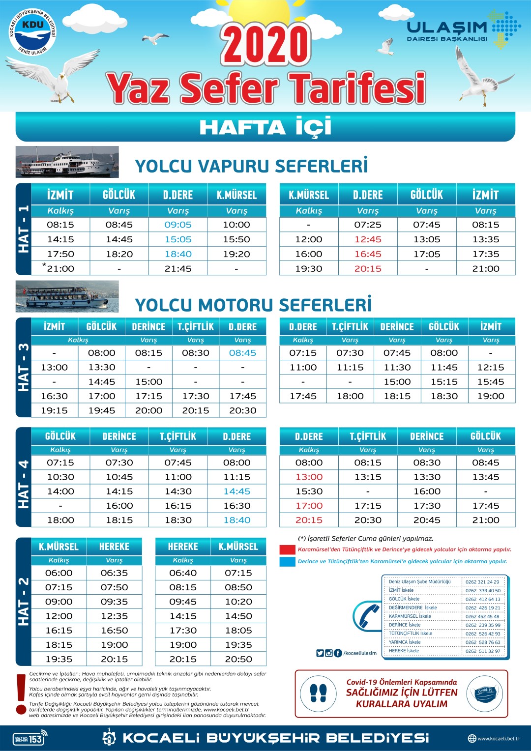 Yeni seferlerle birlikte 4 hat 90 sefer yaparak hizmet verecek. Seferler ile birlikte 2020 yılı yaz sefer tarifesi uygulanacak. Yeni seferler ile birlikte deniz ulaşımında koronavirüs salgını nedeniyle geniş güvenlik önlemleri alındı. Önlemlerin başında maske kullanımı, hijyen kuralları ve sosyal mesafe ön plana çıkıyor.
