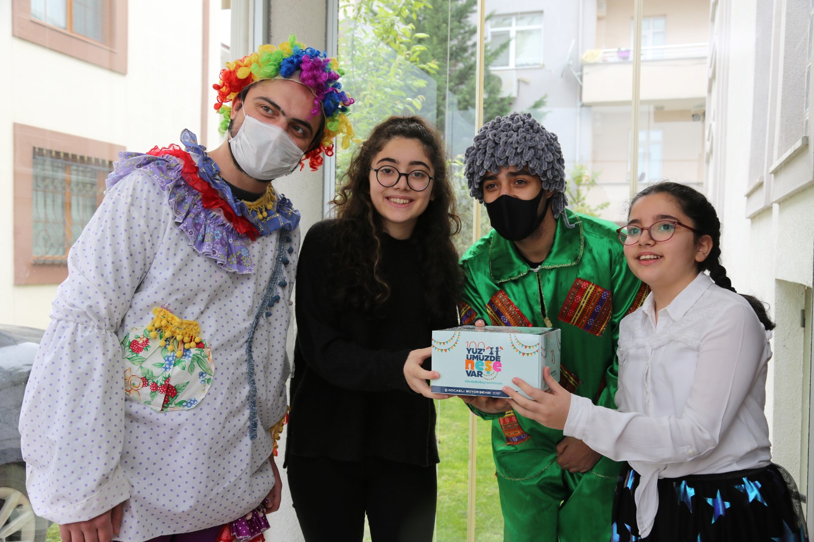 "Büyükşehir Belediyesi Kovid-19 salgını ve sokağa çıkma kısıtlaması nedeniyle 23 Nisan Ulusal Egemenlik ve Çocuk Bayram ile TBMM'nin 100. yılı olması hasebiyle sağlık çalışanlarına anlamlı bir sürpriz yaptı. Gece gündüz görev başında olan ve hastalığı bulaştırmamak için evlerine dahi gitmekten çekinen kahraman sağlık çalışanlarının çocuklarına Kocaeli Pastacılar Esnaf ve Sanatkarlar Odasının iş birliğiyle 100. yıl pastası gönderildi. Pastalar, Büyükşehir Belediye personeli ve palyaçolar tarafından Kocaeli'de görev yapan 4 bin 800 sağlık çalışanının evlerine kadar götürüldü. Görev başında olan sağlık çalışanlarının çocuklarına teslim edilen pastaların içerisinde Büyükşehir Başkanı Tahir Büyükakın'ın çocukların bayramını kutladığı tebrik kartı da yer aldı."